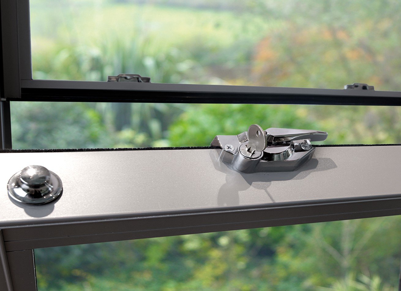 This window can also be used in domestic properties with a choice of decorative sash horns & deep bottom rails available if you are trying to replicate a traditional sash window. All VEVO aluminium sliding sash windows come with traditional authentic looking catches in a range of colours: White,Black, Gold, Chrome & Brushed steel.